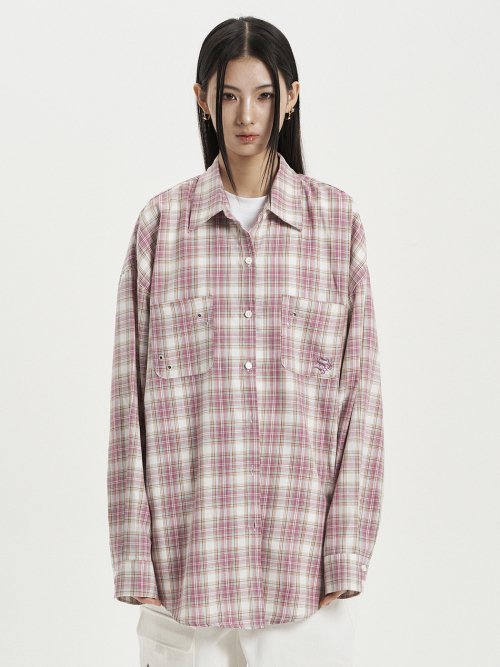 셋업이엑스이 OVER CHECK SHIRT / PINK